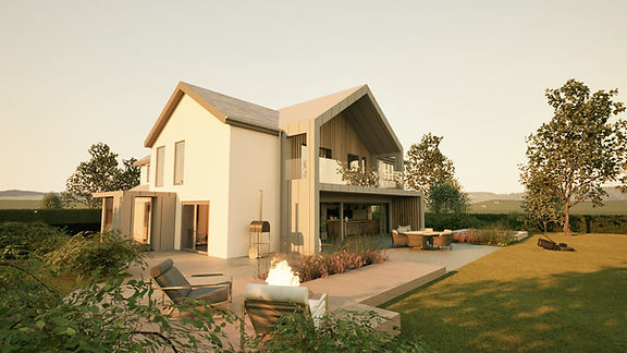 The existing dwelling was substantial in size and sat on a generous plot with excellent views; however, it had been built with relatively low-quality materials, and the layout did not suit modern living. The proposal introduced a spacious open-plan kitchen and dining area with large sliding doors that open directly onto the garden.